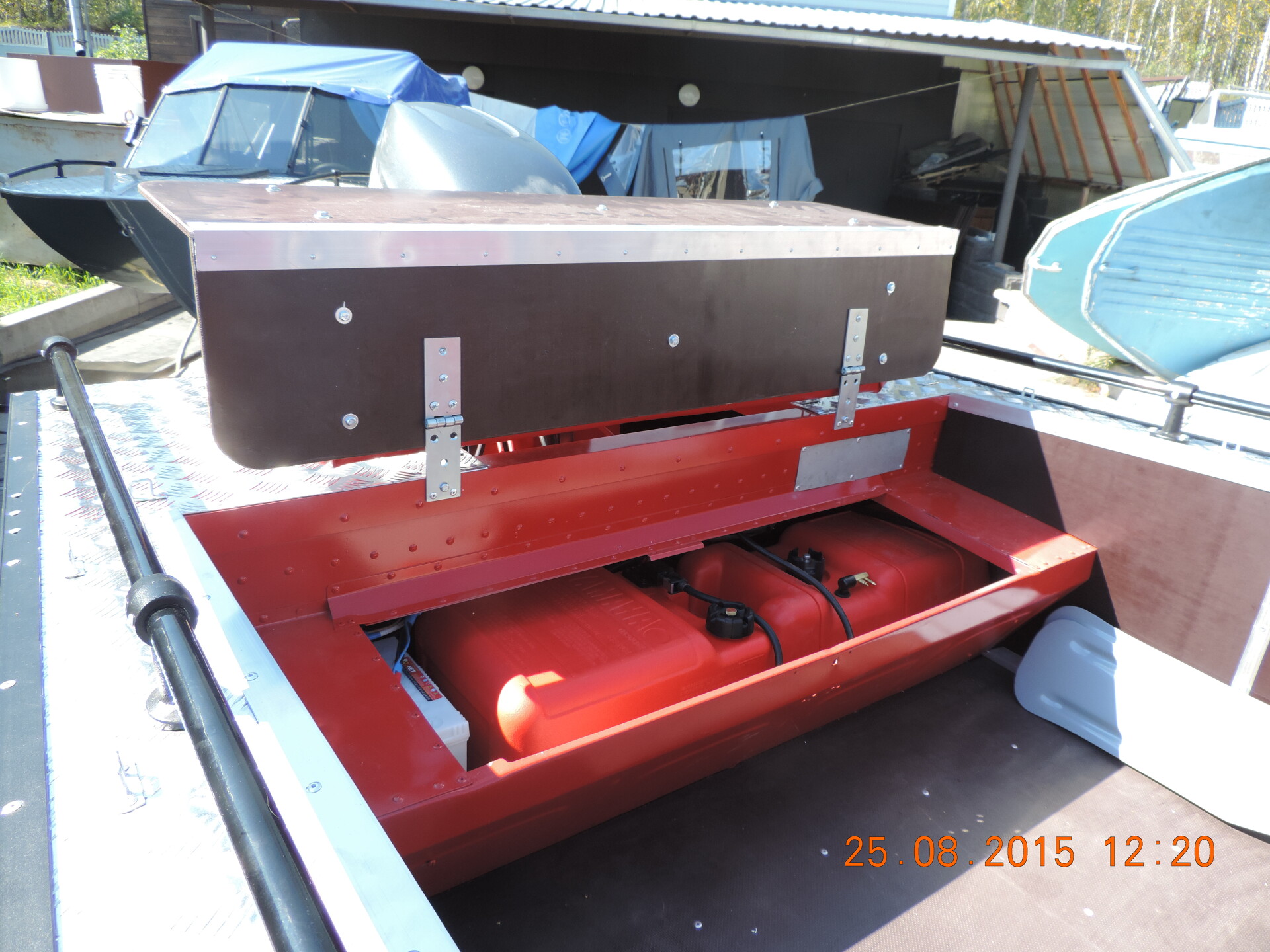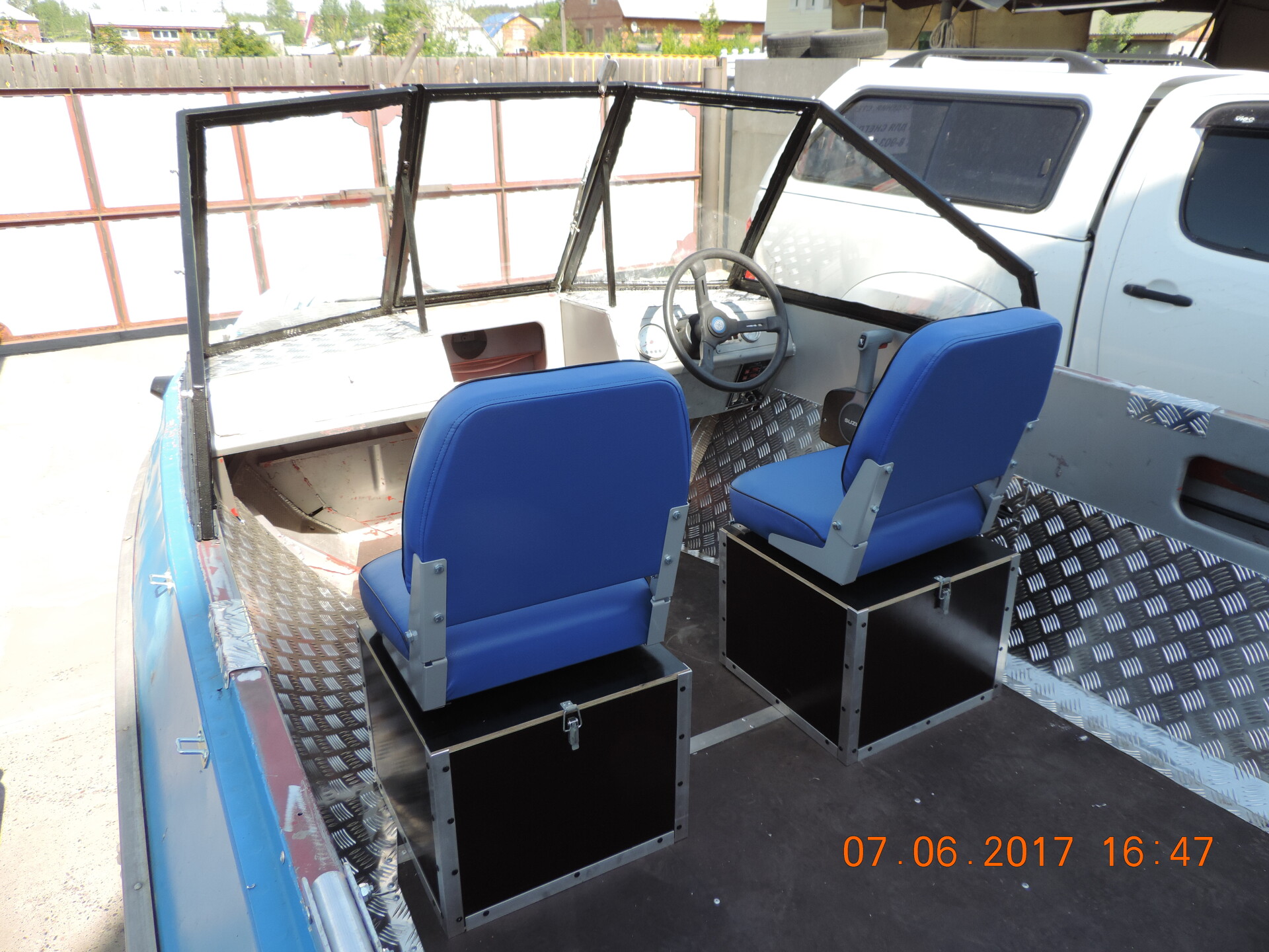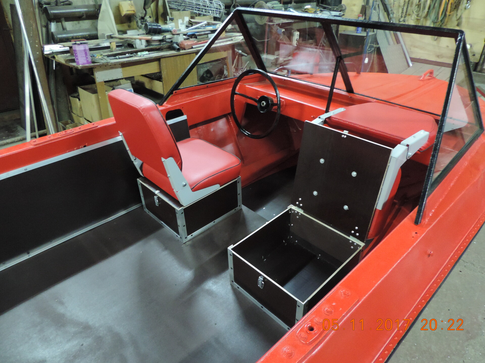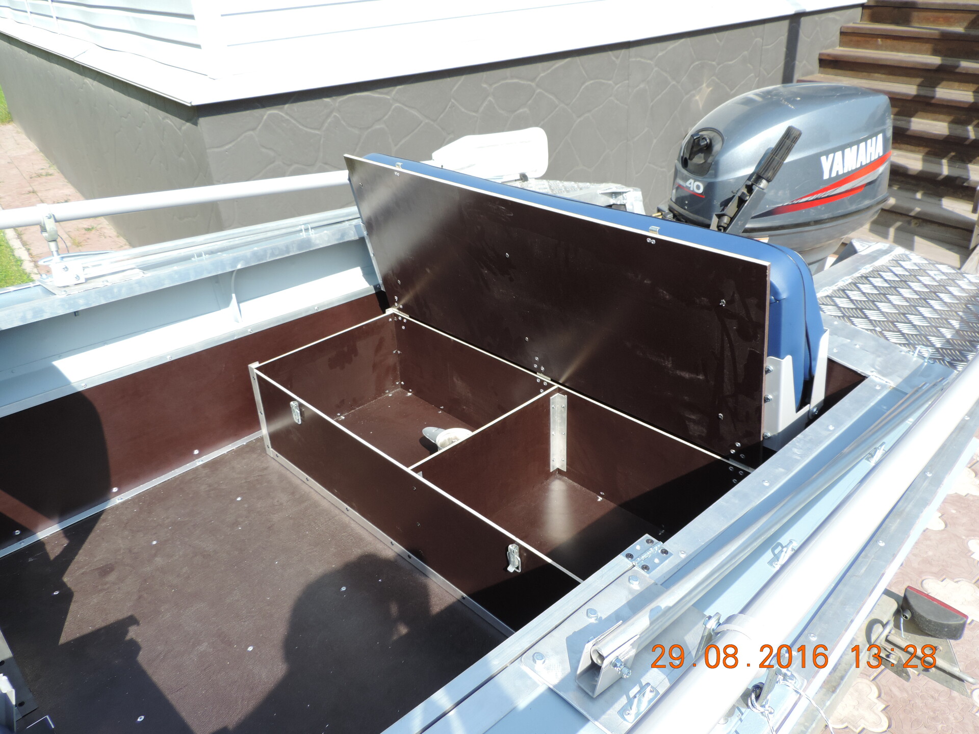 Большие рундуки из влагостойкой фанеры под сидения с дальнейшим креплением поворотной платформы.