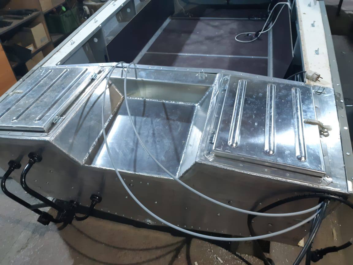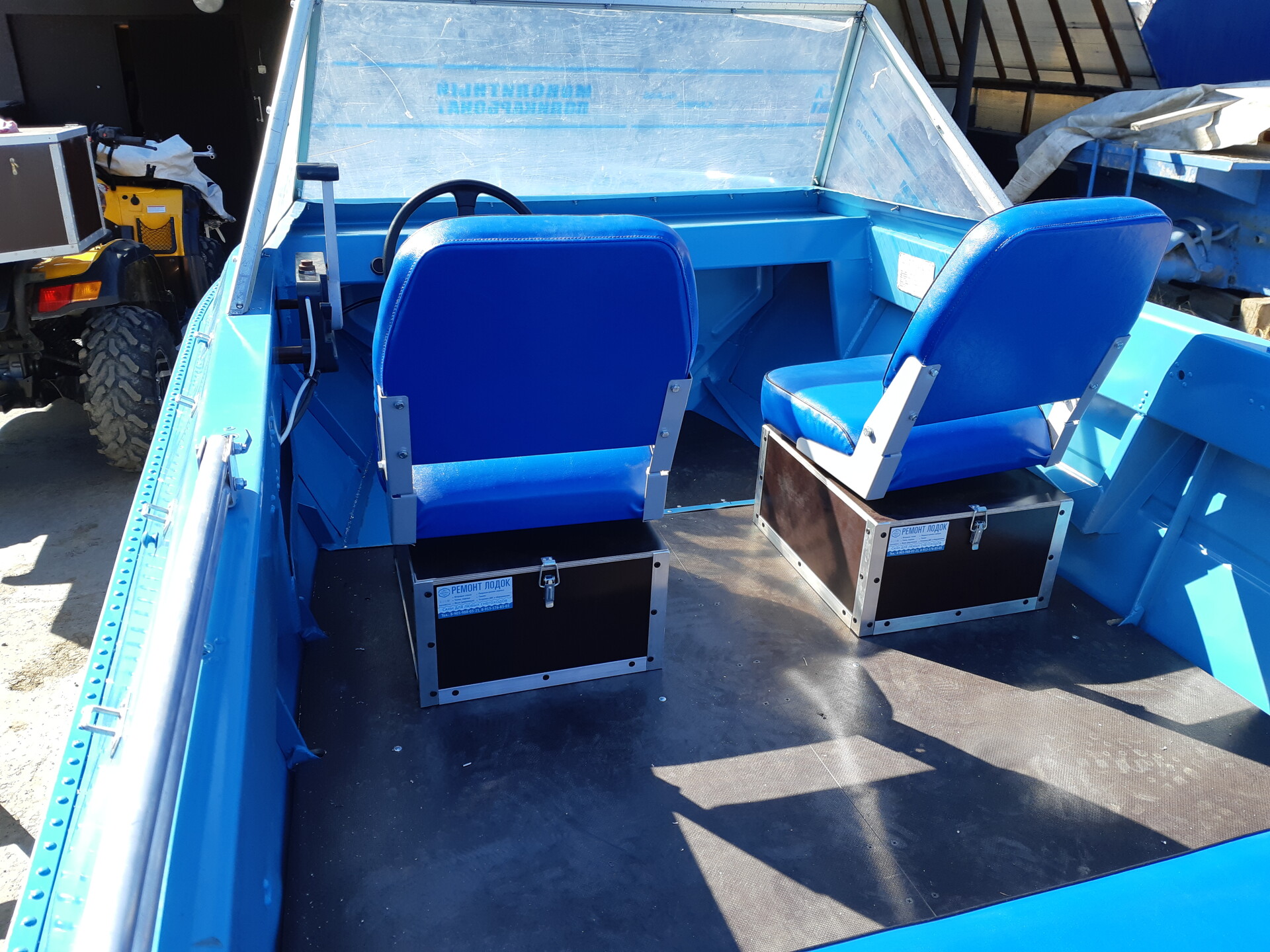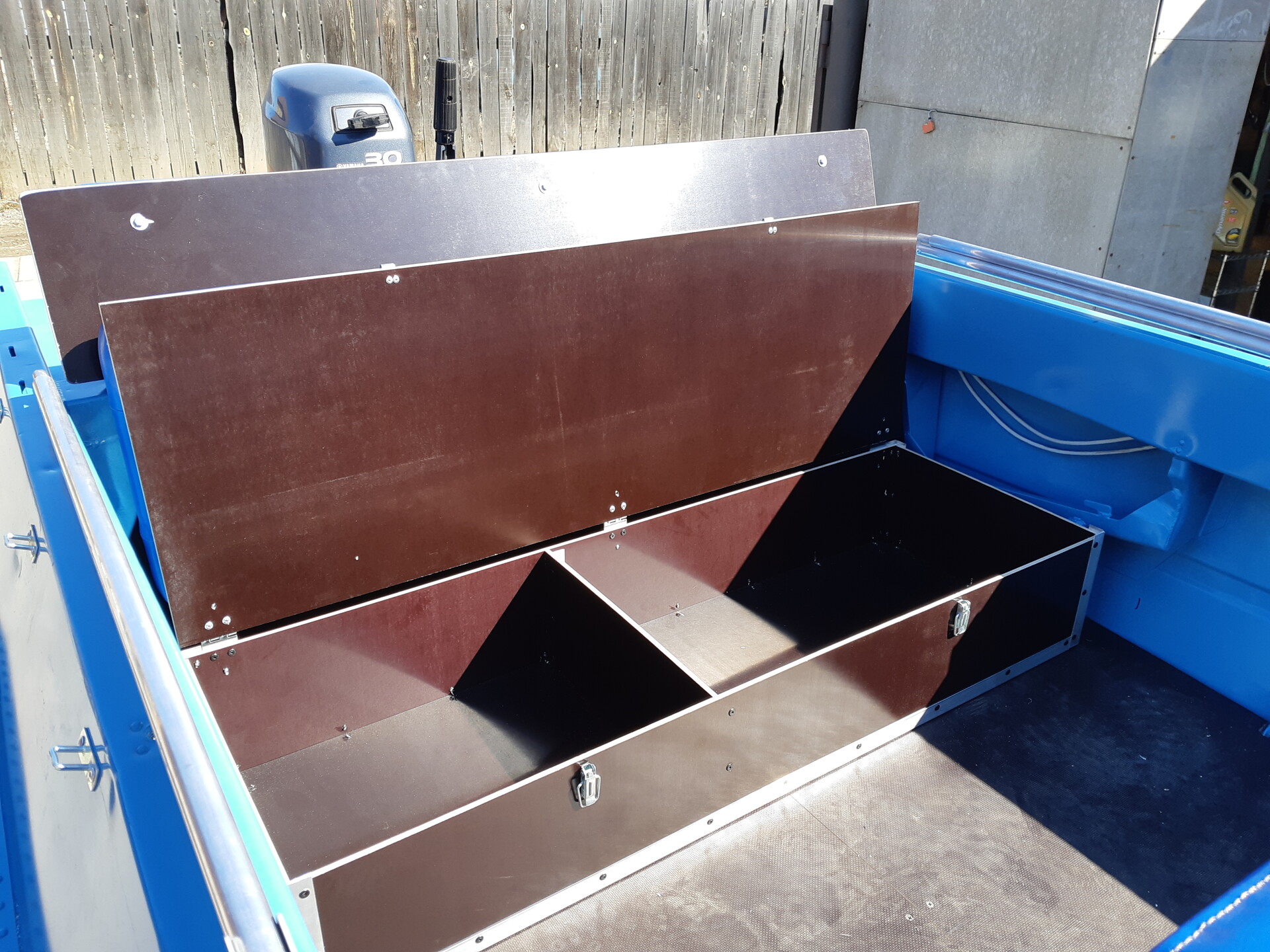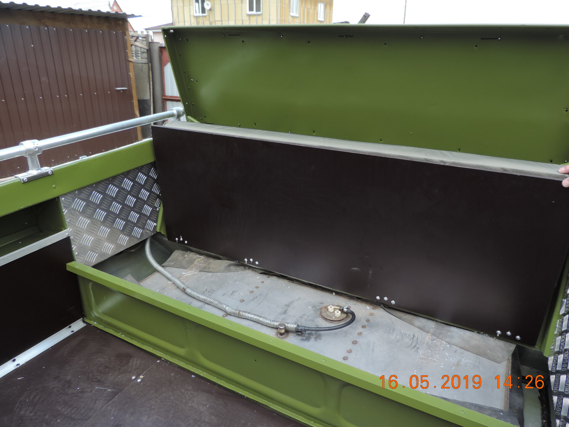 Большие рундуки из влагостойкой фанеры под сидения с дальнейшим креплением поворотной платформы.