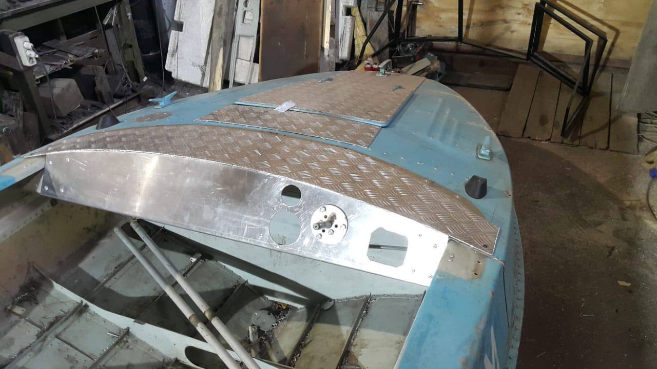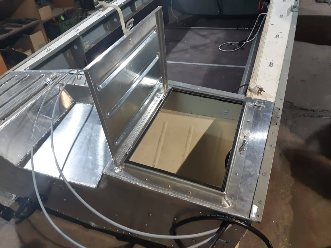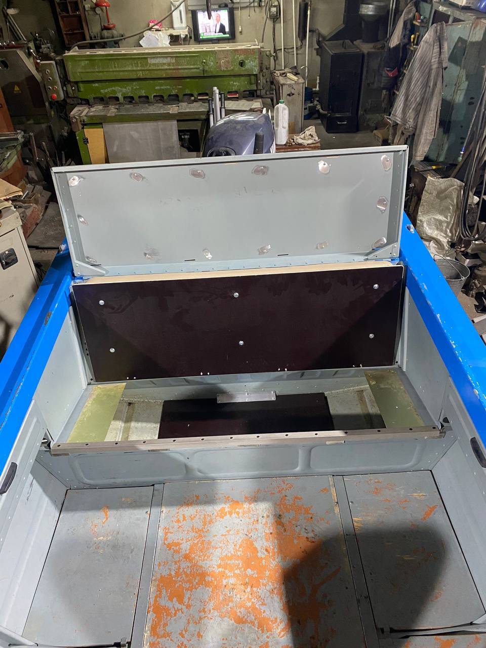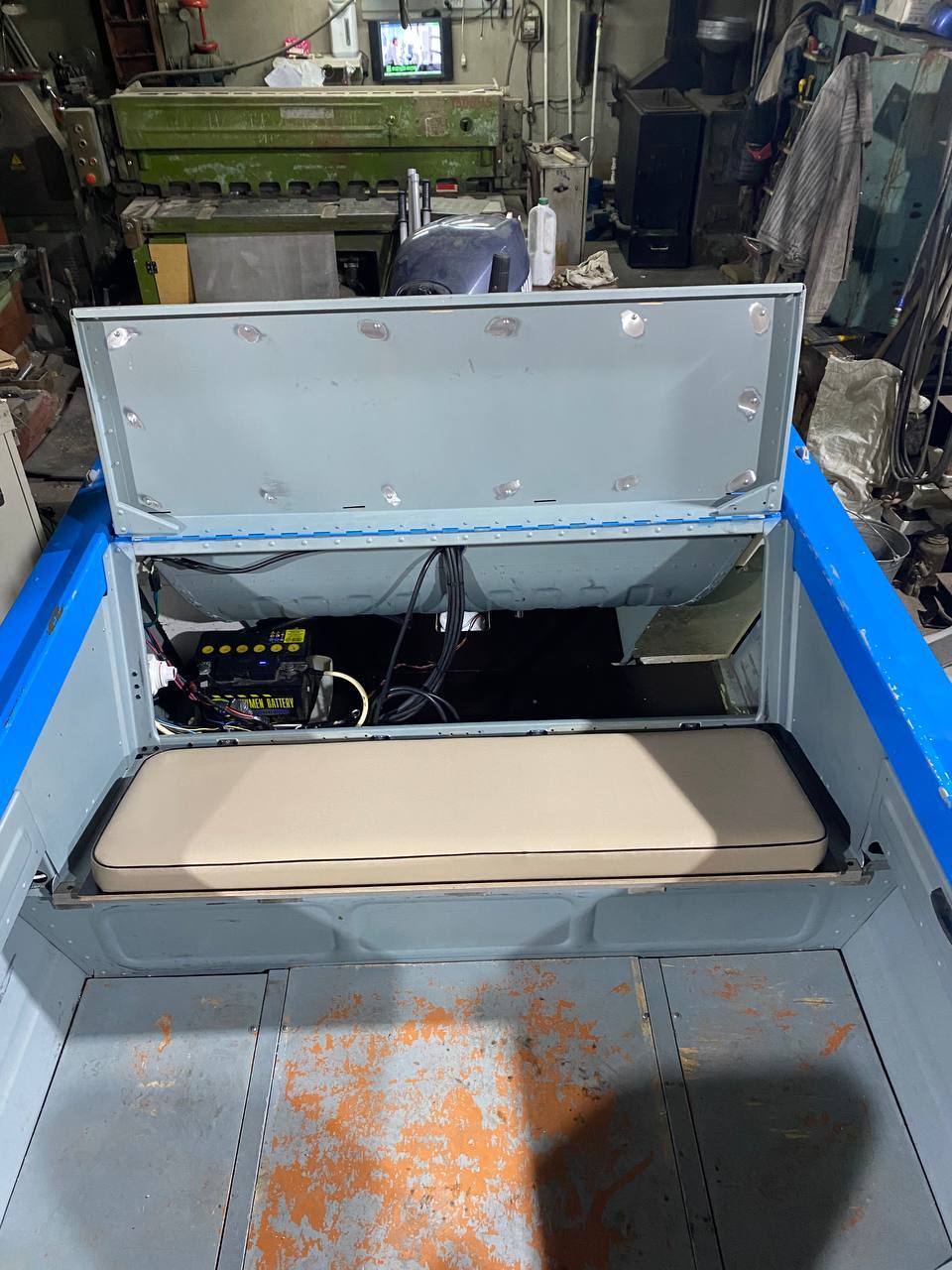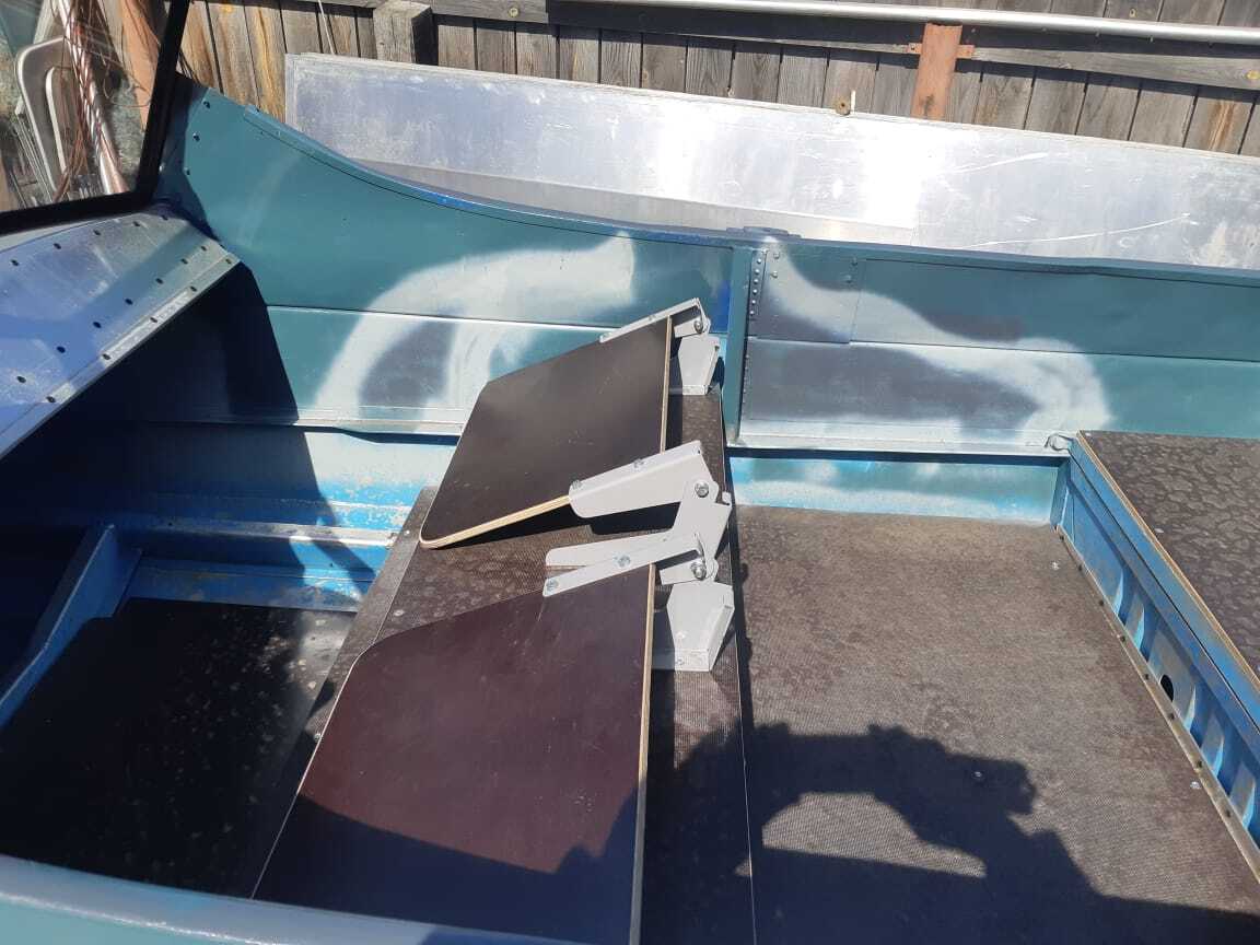 Большие рундуки из влагостойкой фанеры под сидения с дальнейшим креплением поворотной платформы.